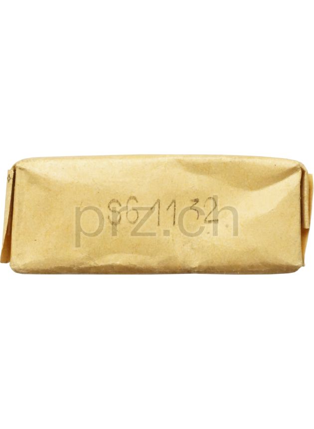 Full soft pack with 10 cigarettes pack from a 10-in-1 Ration with craft paper inner wrapping, cellophane wrapper and a free of tax or taxpaid stamp on the top which was added to cigarette packs during WWII.