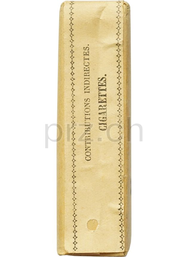 Full French soft pack of 20 cigarettes from war time for prisoners with a banderole, featuring an image on the back of a nurse distributing tobacco and cigarette packs, along with the inscription «RÉSERVÉ AUX PRISONNIERS DE GUERRE FRANÇAIS».