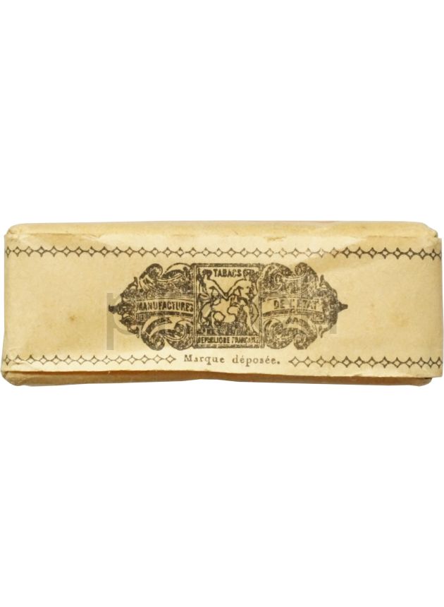 Full soft pack of 20 cigarettes with inner foil wrapping, cellophane wrapper and a French tax stamp on the top from the manufacture «Régis Française Des Tabacs», which, at the end of WWII, produced Pall Mall cigarette packs under license of «The American Tobacco Company».