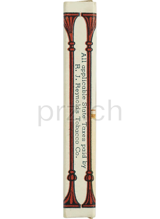 Full hard pack with 4 cigarettes from a K-Ration placed in a cardboard tray in a Camel branded sleeve.
