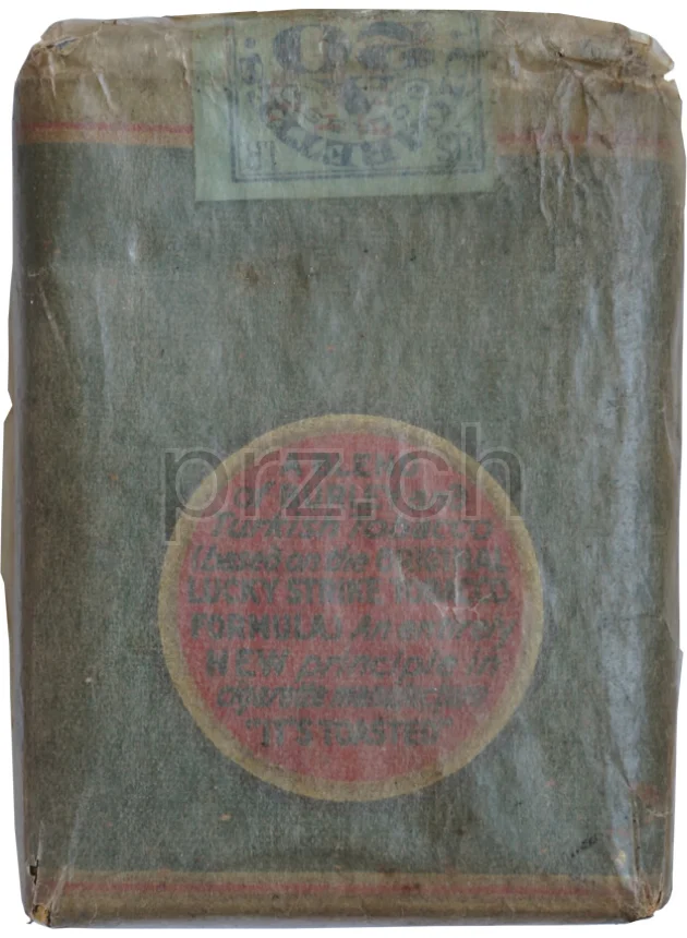 Full soft pack of 20 cigarettes with inner foil wrapping, cellophane wrapper, a Dewitt Clinton tax stamp on the top without a serial number and an outer wax paper wrapping.