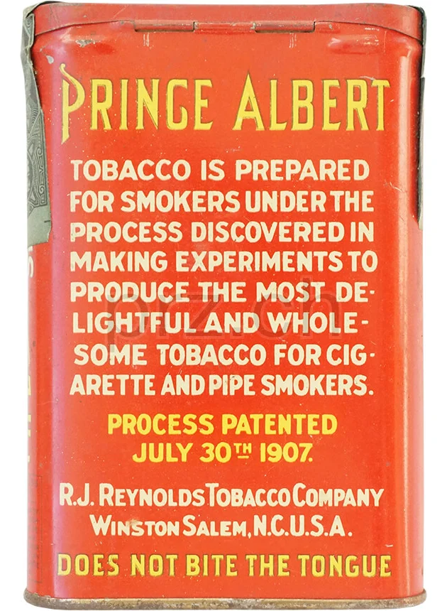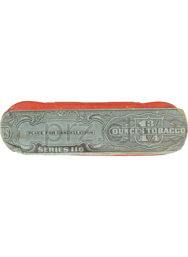 A full tin of American pipe and cigarette tobacco from R.J. Reynolds Tobacco Company with a 1 3/4 ounces tax stamp on the top with Series 116 for 1946.