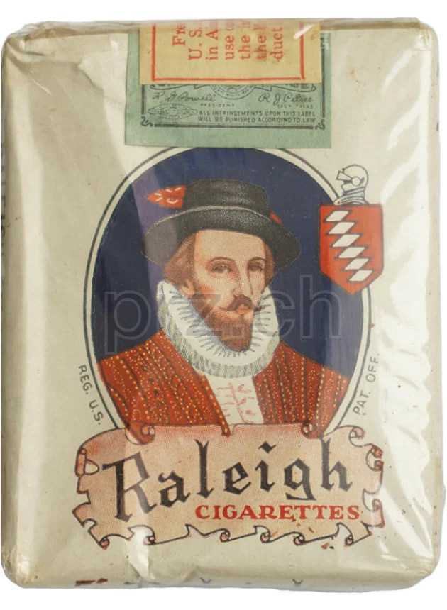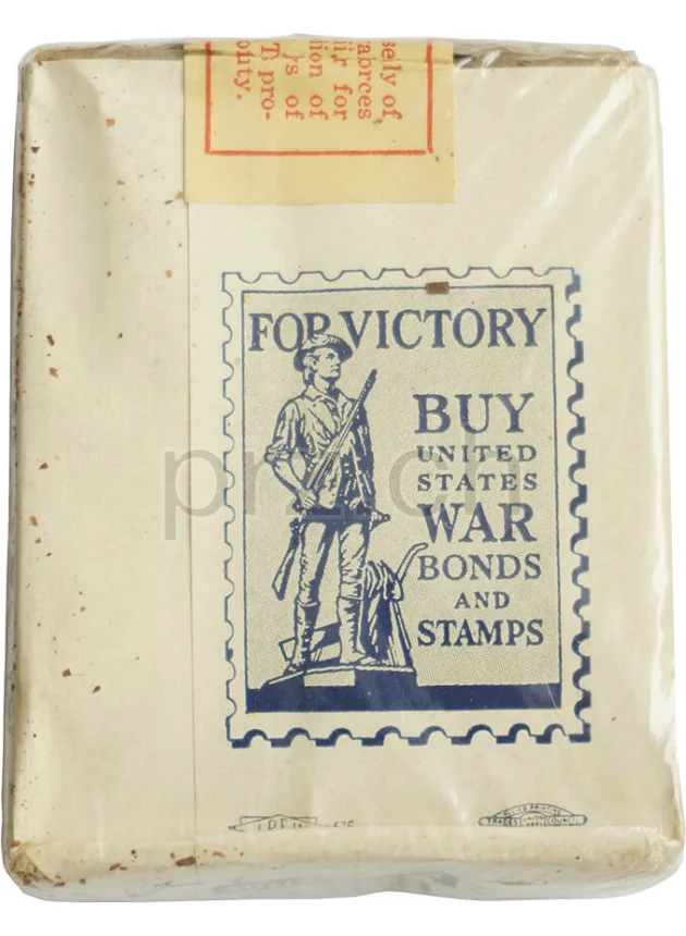 Full soft pack of 20 cigarettes with craft paper inner wrapping, cellophane wrapper and a free of tax or taxpaid stamp on the top which was added to cigarette packs that had the tax paid by the manufacturer for shipment overseas to the Armed Forces during WWII. With the wording «Free of Tax - For military or naval forces in Alaska and Hawaii or for outside the jurisdiction of the internal revenue laws of the United States».