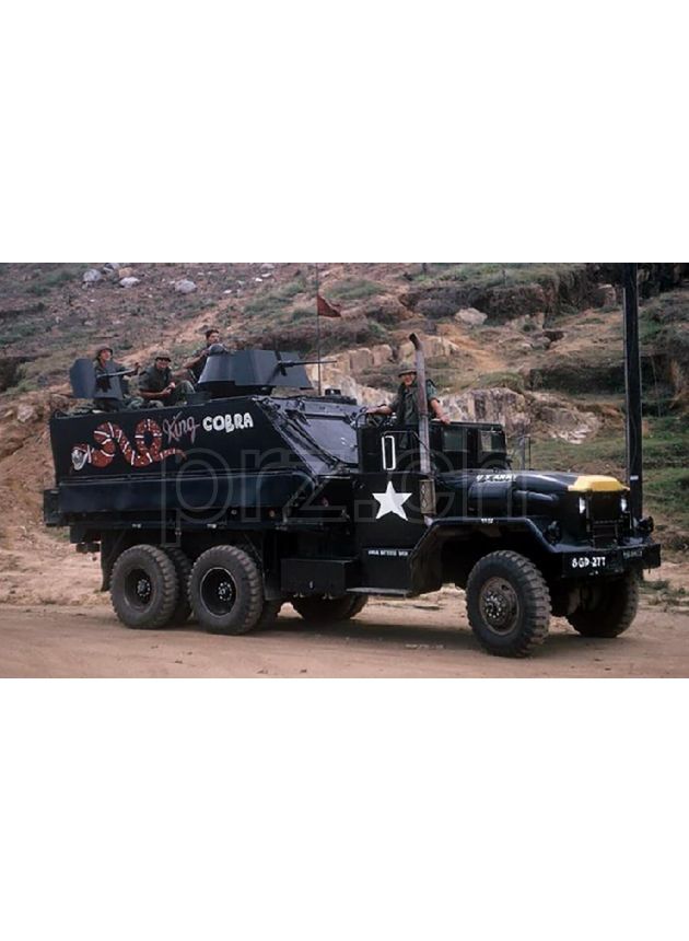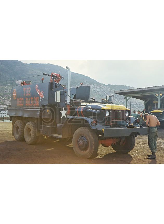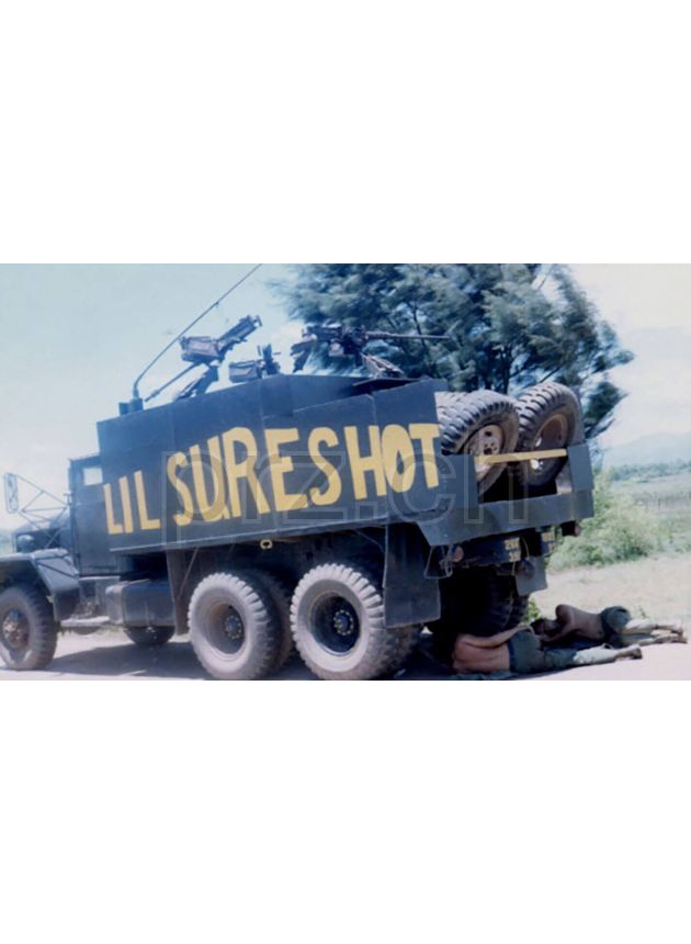 The 805th Transportation Company (Light Truck), part of the 39th Transportation Battalion, served in Vietnam from 1966 to 1971. Its early period of service was based in the central coastal region near Qui Nhon, before the unit later redeployed north to Phu Bai. Known by the nickname «Gearjammers», the company ran critical supply convoys in I Corps Tactical Zone, moving troops, ammunition, and equipment between coastal ports and inland bases. Due to frequent ambushes and mine threats, the 805th employed gun trucks for convoy protection, including the well-known “Lil Sureshot”, painted with a large bullseye on each side. Their work kept vital supply lines open under constant risk, reflecting the dangerous but essential role of U.S. Army transportation units in Vietnam.