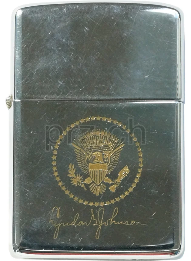 Zippo factory engraved on the front with the presidential seal and the signature of «Lyndon B. Johnson».
